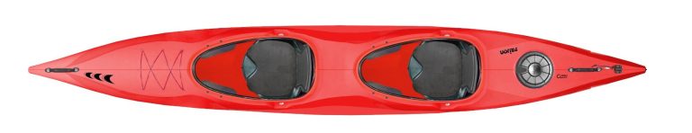 Mit drei Sitzluken und mit einer großen Öffnung als Cabrio-Kajak.